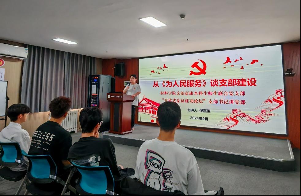 第一会议室召开九月党员论坛。本次会议由咸明杰同志主持,党支部全体党员、部分入党积极分子和材料2024级新生参与会议。