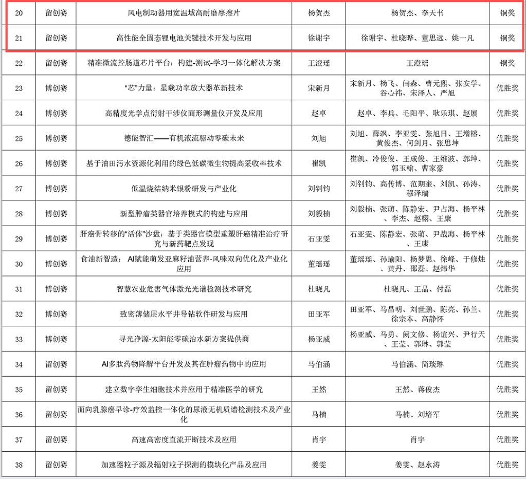 参赛团队凭借科研实力与创新成果脱颖而出,荣获金奖1项、银奖1项、铜奖2项的优异成绩,为学校创下历届最佳参赛纪录贡献了重要力量,展现了材料学科在前沿科技领域的深厚积淀与蓬勃活力。