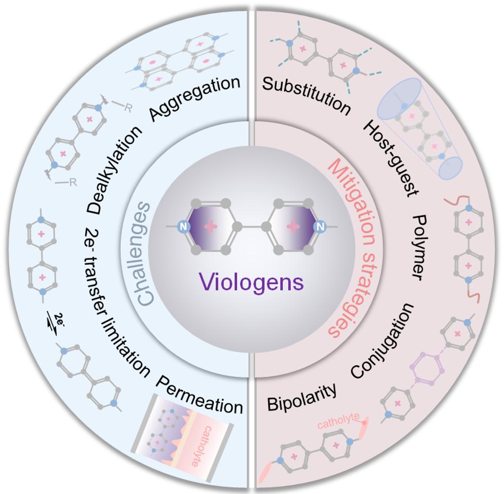 不仅深化了对紫精类电解液碱化起源的理解,也为设计高耐久性水系有机液流电池电解质提供了具有普适意义的理论框架。